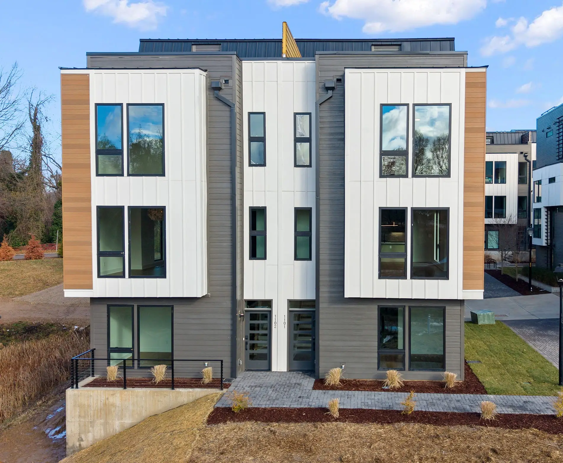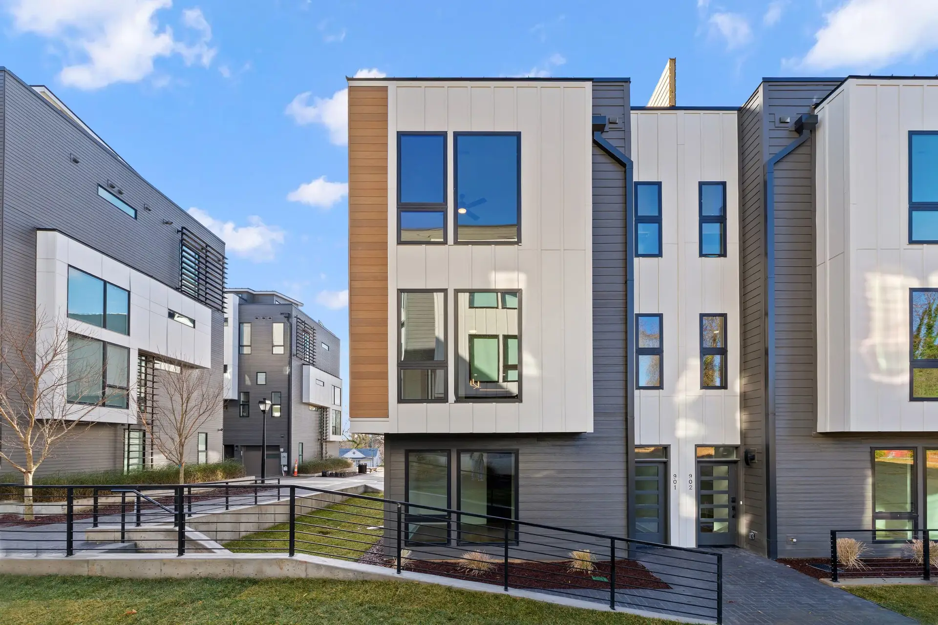 For-sale townhomes with rooftop terraces near Downtown Durham.